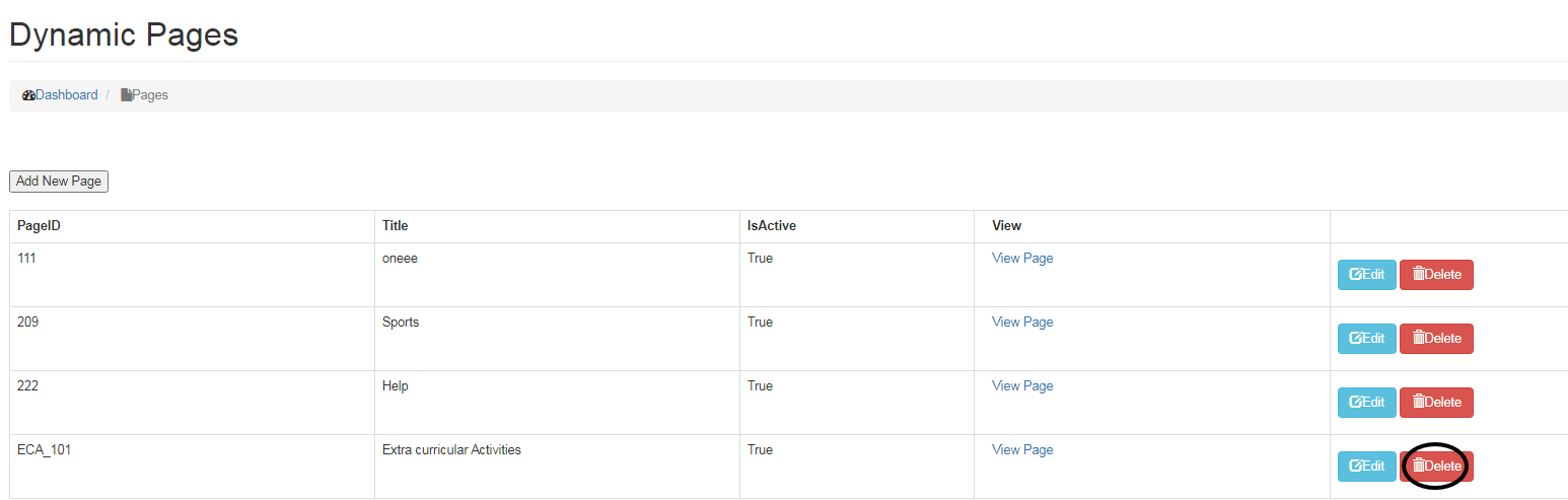 • To Delete Page, click on the Delete button next to Edit button.